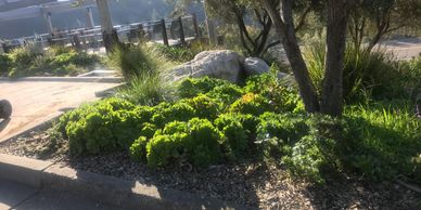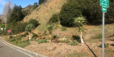 ENVIRONMENTAL INSANITY IS THE RIGHT WAY TO CHARACTERIZE THE MENTALITY THAT LED THE LOCAL MUNICIPALITY TO CREATE THE EXEMPLARY DISPLAY OF THE ENVIRONMENTALLY RESPONSIBLE AND FIRE-RESISTANT LANDSCAPING, AS CAPTURED BY THE ABOVE IMAGES.: